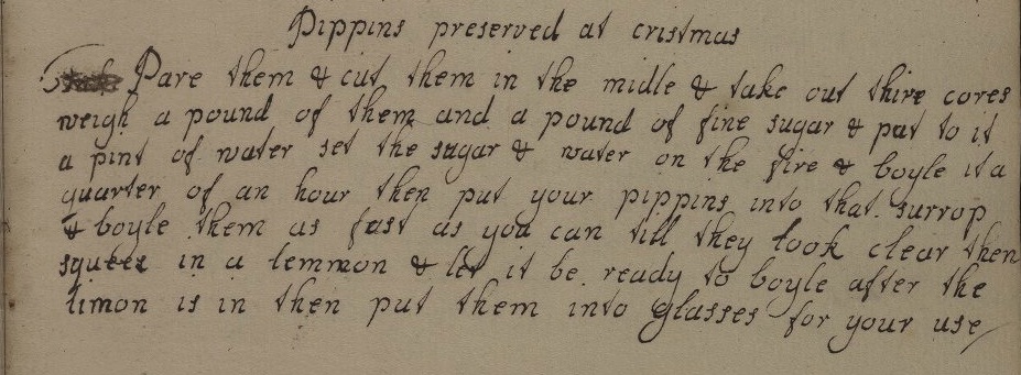For the gingerbread mission, I turned to a new – to us – recipe book: UPenn Ms. Codex 214. Both the front and back covers are embossed with the original owner’s name, and the inscription includes a date, so we know that the book originally belonged to Catherine/Catharine Cotton and was compiled starting around 1698. We’ll definitely be revisiting this collection, which contains a range of appealing recipes – including the poached apples I have my eye on next. Cotton’s book turned out to be well-suited to this particular mission, as it contains three gingerbread recipes: one with honey and candied peel, one with brown sugar and milk, and one with treacle and caraway seeds.
