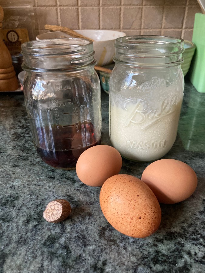 A word of warning: As curious as I was about this recipe, my recipe trial didn’t quite work. There were many clumps of eggs in the finished posset, but no pleasant “cheese.” I can think of a number of reasons for the failure of the recipe trial to produce what Hawar describes. I suspect the biggest culprits were my twenty-first century ingredients: modern sherry substituted for seventeenth-century sack, egg size and moisture differences, cream pasteurization and homogenization. I also wonder if a tall thin, cooking pot might have enabled the ingredients to separate differently. Finally, it was a hot day in Philadelphia which may have impacted the ingredients and the finished product.