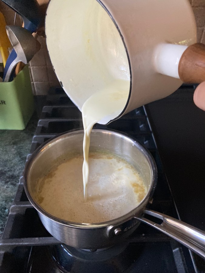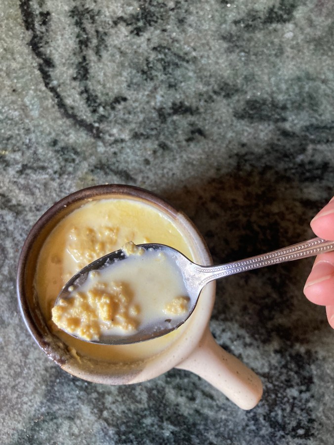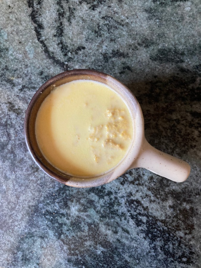 Cover the posset with a lid and let it cool. A cheesy layer of eggs and cream should form on the top.
